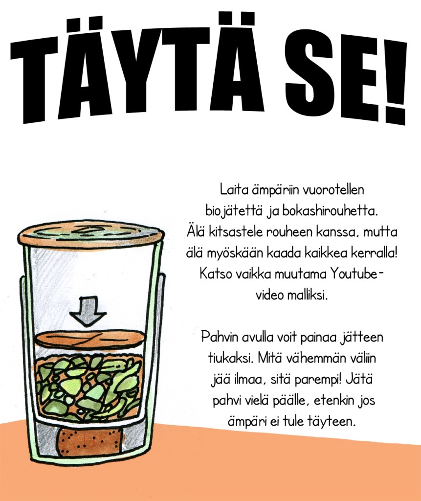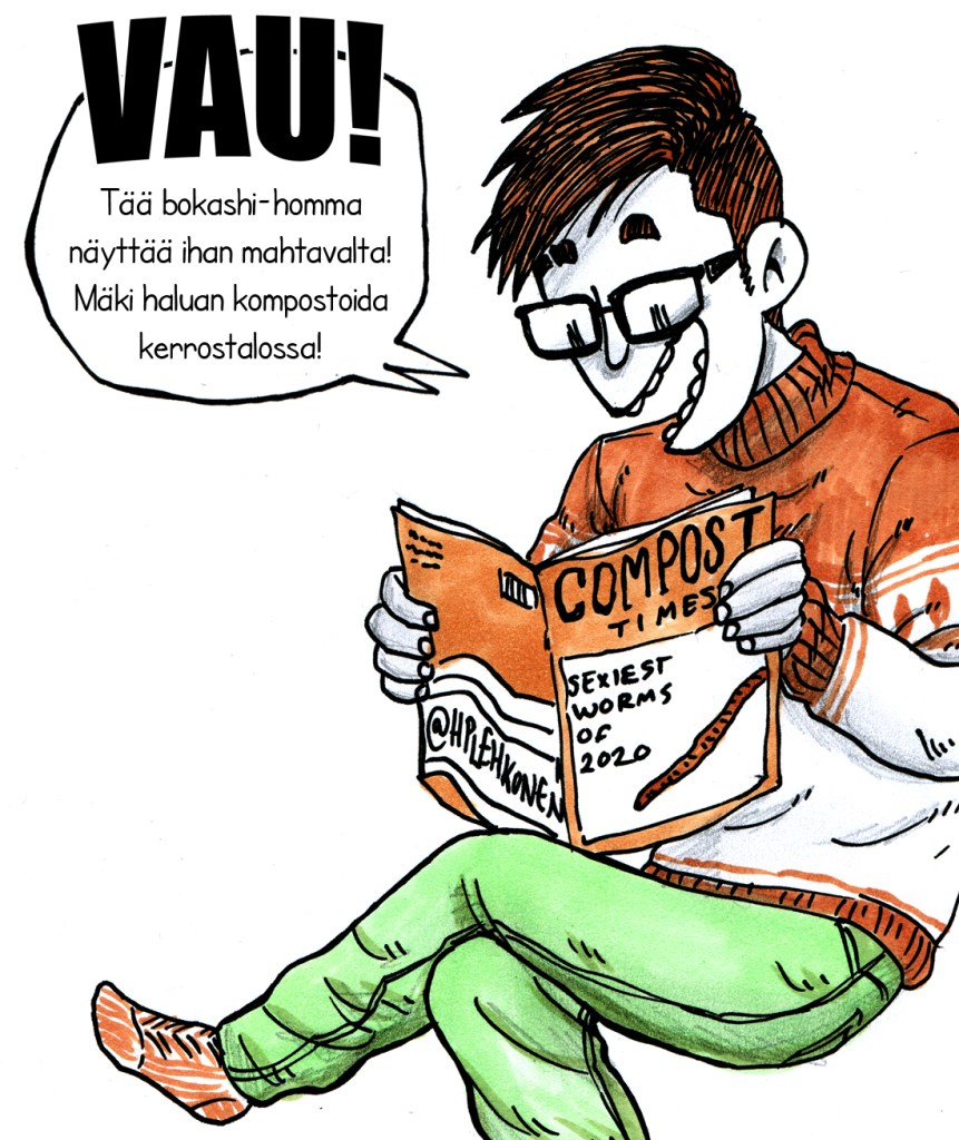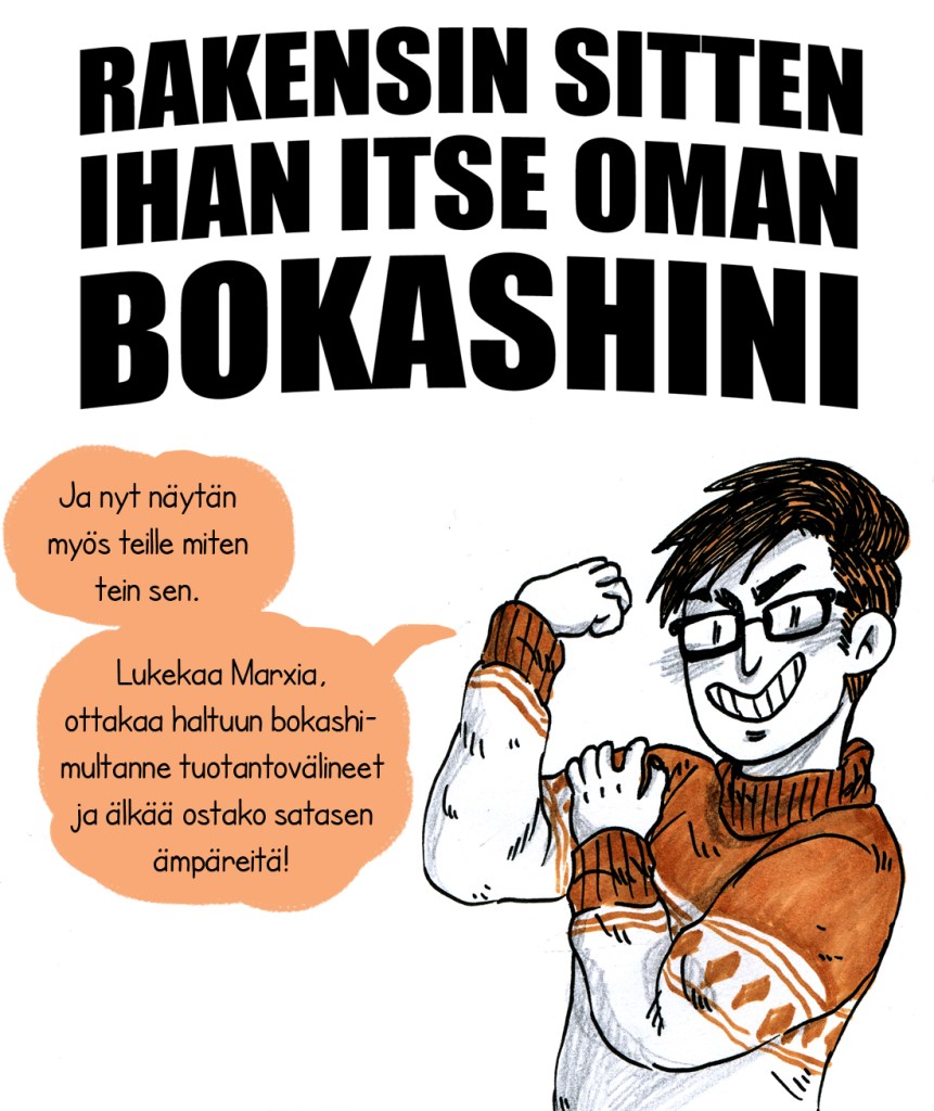 Bokashi-kompostointi on kasvattanut viime aikoina suosiotaan, mika on tuonut valmiiden kompostorien hintoja alaspäin. Mutta halvasta on olemassa vielä halvempi versio, ilmainen. Sarjakuvaohjeen avulla kokemattomampikin osaa rakentaa oman Bokashi-kompostorinsa!