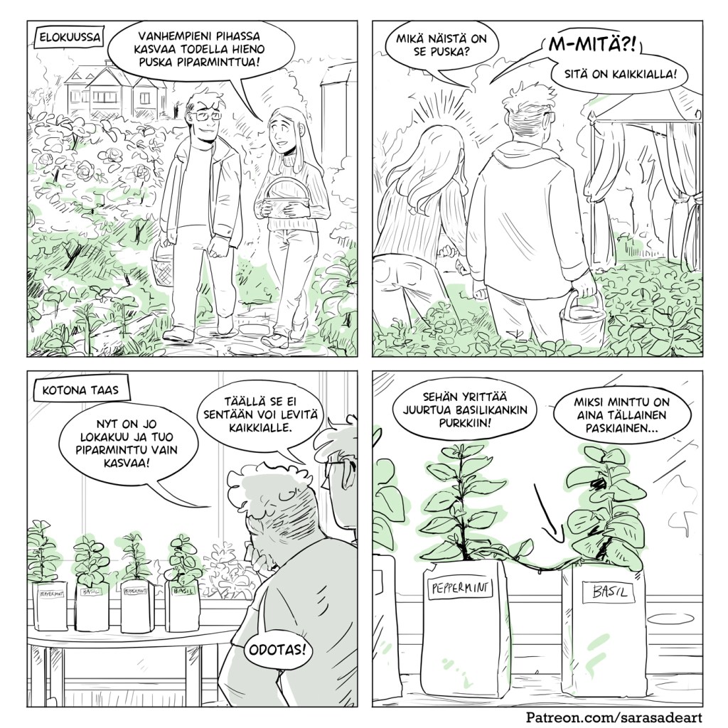 Jos olet koskaan kasvattanut minkään sortin minttua, tiedät, että se on todella tehokas leviämään. Pidä siis huoli, että et istuta minttua lähelle muita kasveja, tai istutat sen erilliseen ruukkuun! Toivottavasti menettämämme mansikkamaa voi toimia varoittavana esimerkkinä myös sinulle.