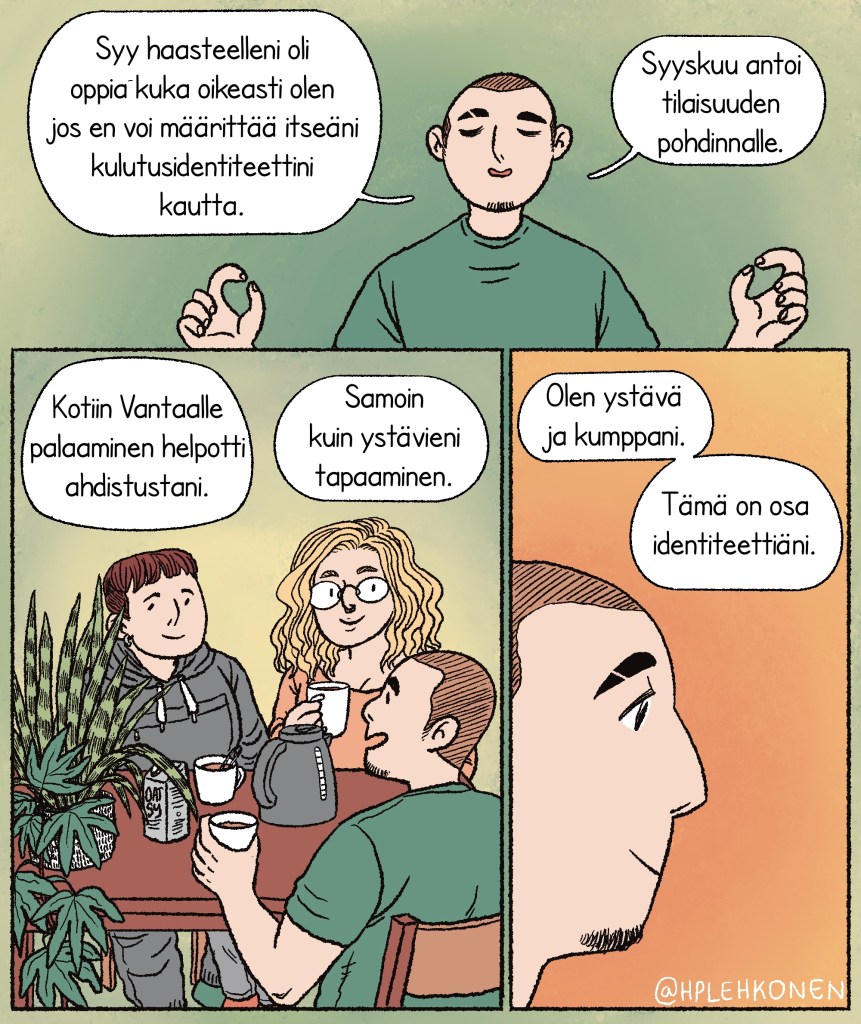 Sanottakoon tässä alussa vielä, että vaikka en sarjakuvassa erikseen tätä mainitse, en lipsunut haasteestani. En vain halunnut, että sarjakuvan pituus venyy mahdottoman pitkäksi identiteettipohdinnan jälkeen.
