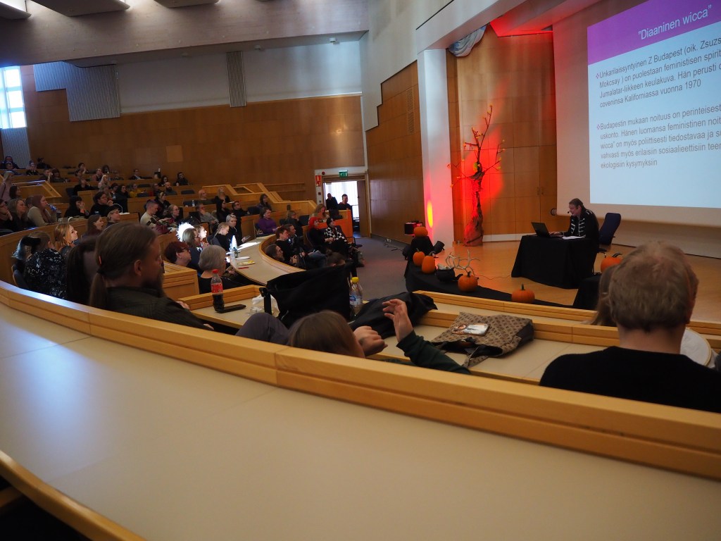 Todistin tapahtumassa kolme ohjelmanumeroa. Duo Mysticus esitti lauluja muinaissuomalaisuudesta ammentaen, säestäen kitaralla ja rummulla. Elina Sjöblom kertoi kasvimagiasta, eli siitä, kuinka noita voi hyödyntää kasveja energioita muokatessaan (vai hyödyntääkö kasvi ihmistä?). Paneelissa Porvoon kipinä -lehden toimittajat kertoivat uusimmista teoksistaan ja julkaisuistaan.