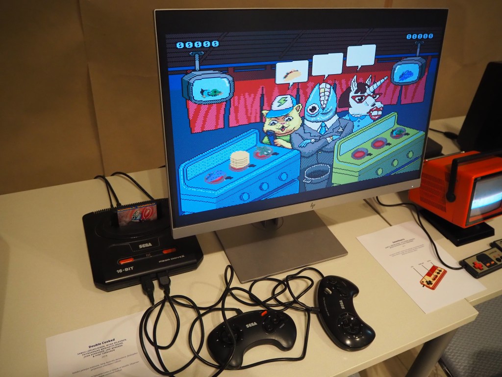 Esillä oli vanhoja konsoleita ja pelilaitteita ja harrastajajoukon niille itse tekemiään peliteoksia. Esimerkiksi Nintendo 64:lle tehty Kumi-Daiko Beatoff 64 on Samuli Jääskeläisen, Petteri Timosen, Pyry Takkusen ja Rufiovin käsialaa.