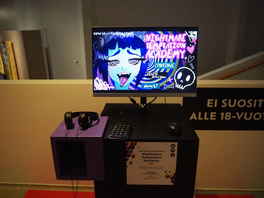 Nightmare Temptation Academy on maailmanloppuun sijoittuva deittisimulaatio. Myös tässä pelissä on hypnoottinen tunnelma: musiikki jumputtaa, grafiikka viettelee ja dialogi vääntää aivoja solmuun. Pelikierrokseni päättyi pelihahmon itsemurhaan. 5/5.