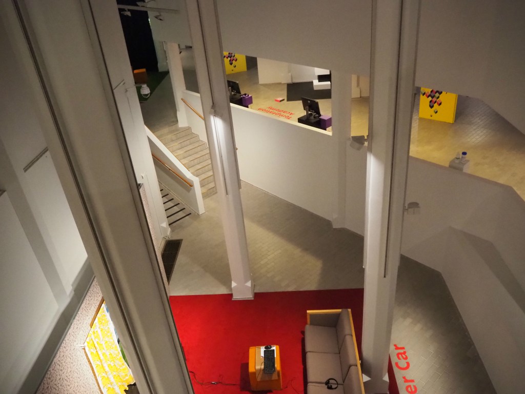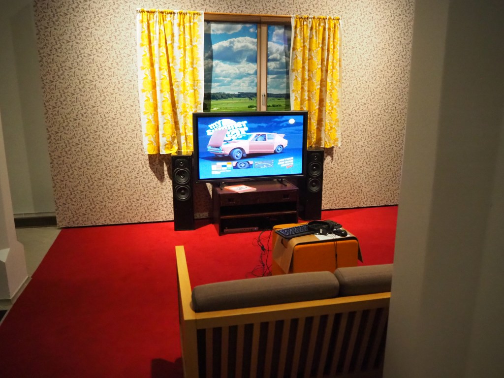 Osa pelipisteistä on sisustettu asiaankuuluvasti teokseen liittyvin rekvisiitoin. My Summer Car -pelipiste on saanut inspiraationsa ysäriolohuoneesta.